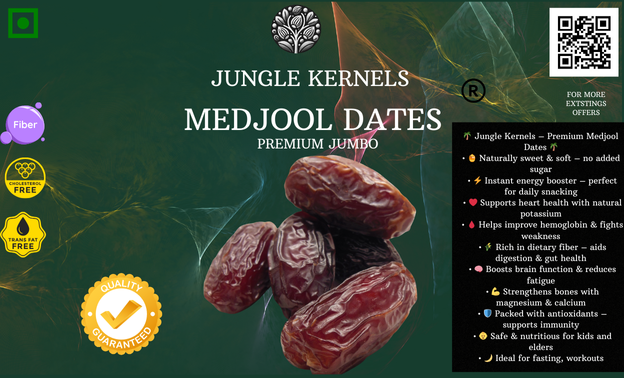 🌟 Jungle Kernels Medjool Dates – Nature’s sweetness, pure energy!